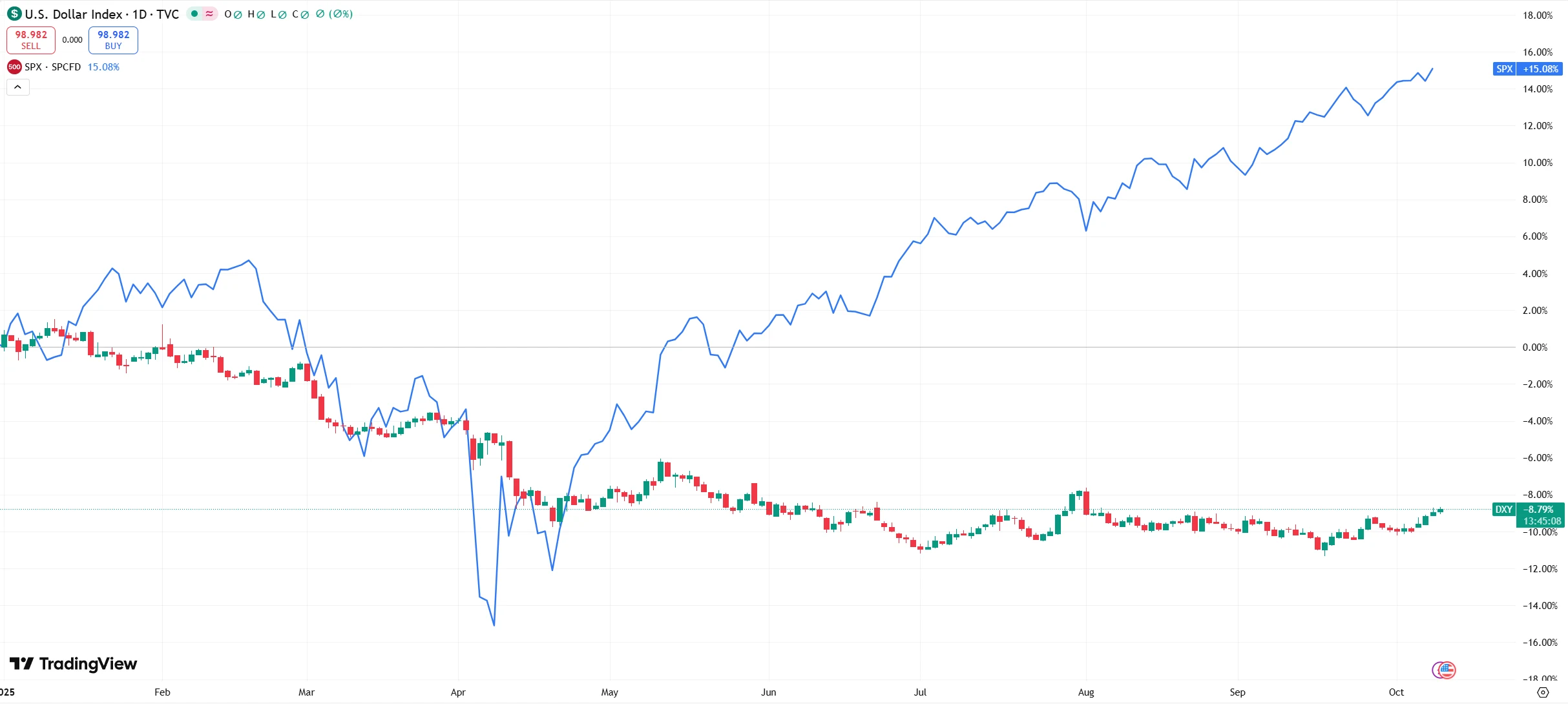 Attention should also be paid to rising tensions in the Middle East. In Q3 2025, risks to oil shipments through the Strait of Hormuz increased. Direct U.S. involvement could further raise defense spending, exacerbate fiscal pressure, and trigger investor concerns over the “safety of dollar assets.” In April 2025, during a decline in the S&P 500, the dollar index fell in tandem, breaking the traditional “equities down, dollar up” safe-haven correlation, reflecting diminishing market confidence in the dollar’s protective role.