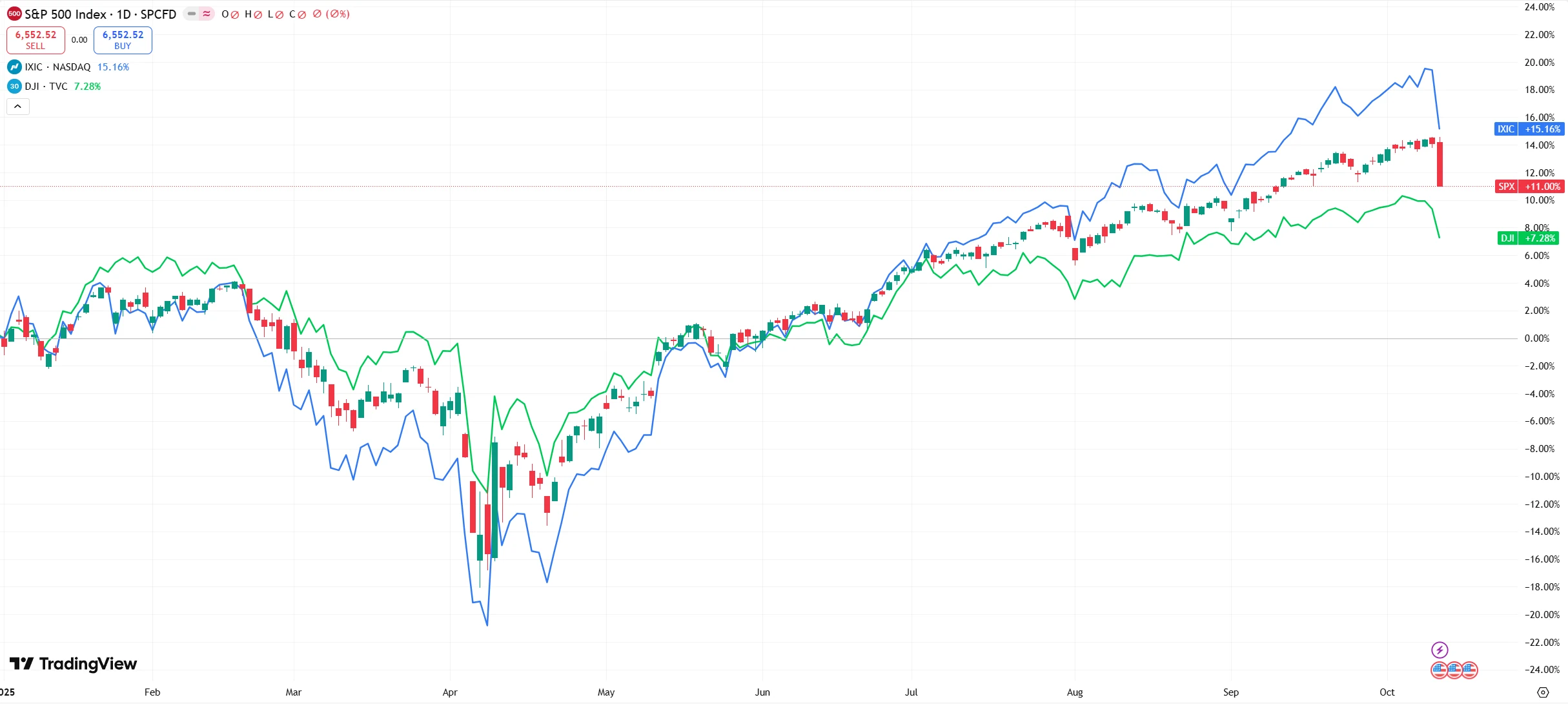 On October 10 (ET), U.S. stocks were hit by a sudden and sharp sell-off. The three major U.S. indices opened higher but plunged abruptly during midday trading, with losses deepening throughout the afternoon. By the close, all major benchmarks had posted their steepest single-day declines since April.