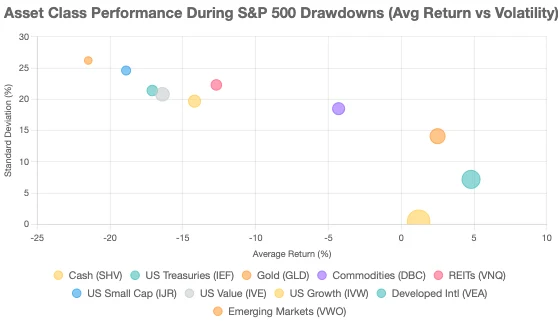 However, this also depends on the specific period of the market decline. The diversification alpha of different asset classes also varies considerably. In some cases, losses in a particular asset class are even greater than the decline in the US stock market. However, in other cases, gains are quite substantial.