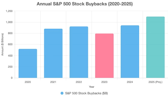 In other words, without buybacks, the stock market would be trading about 40% lower than it is today. With buybacks projected to exceed $1 trillion by 2025 and currently growing at a record pace, the bullish case remains strong.