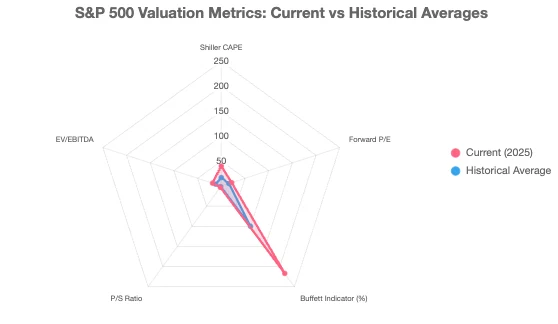 However, many macro indicators suggest that the S&P 500 is currently overvalued. By almost any major market valuation metric, the S&P 500 currently looks overvalued, whether it's the Shiller CAPE exceeding 40 (one of the highest readings in decades), the S&P 500 forward P/E ratio of approximately 23 (well above long-term norms), or even other metrics such as the Buffett Indicator, the price-to-sales model, or the EBITDA version. All of these indicators suggest the market is currently significantly overvalued. Furthermore, these market valuations occur despite the fact that long-term US interest rates (IEF) remain elevated relative to recent history. Typically, rising long-term interest rates push up discount rates, thereby depressing stock valuations.