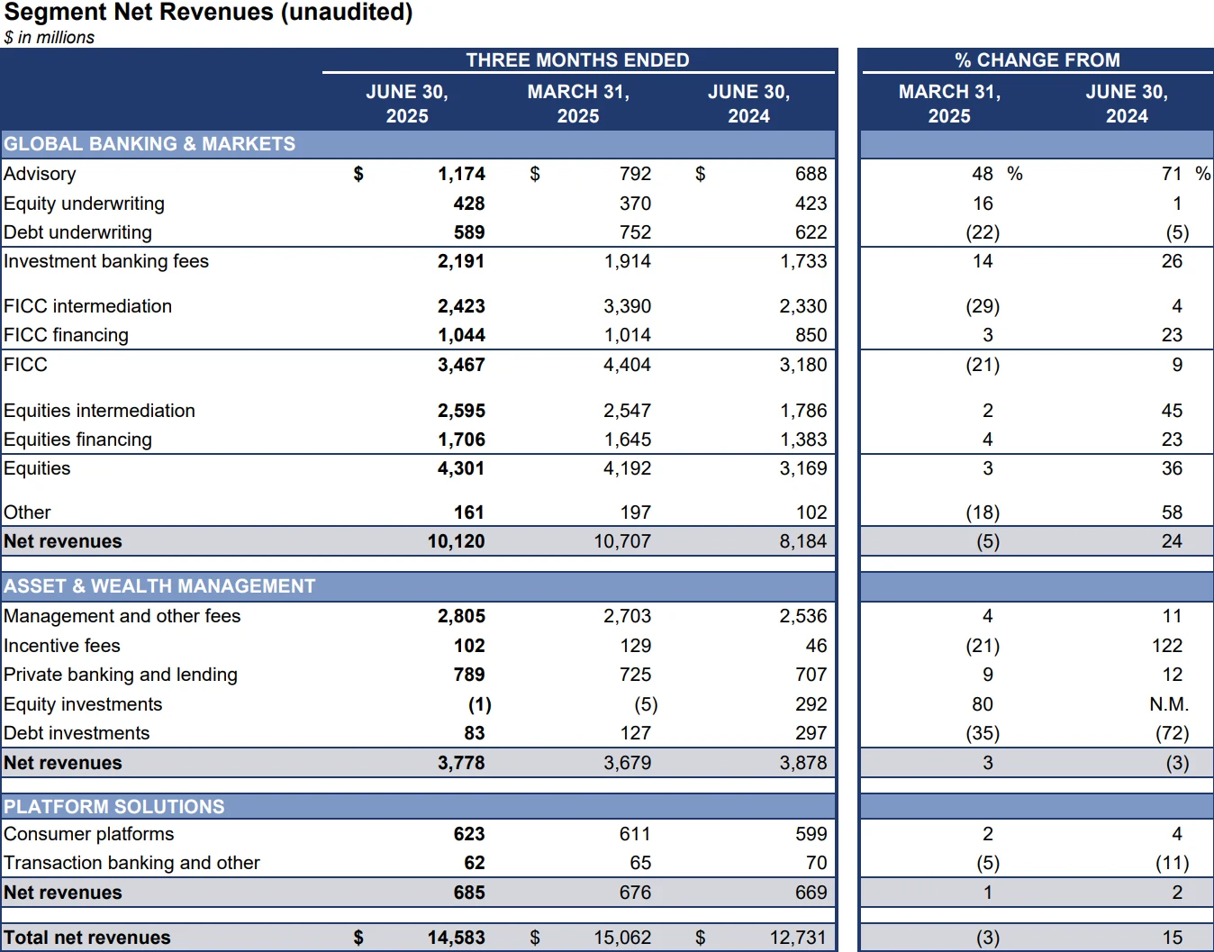 This comprehensive recovery trend is particularly favorable for leading institutions with an “investment banking DNA,” such as Goldman Sachs and JPMorgan. For example, at Goldman Sachs, investment banking revenue accounts for more than 30% of total revenue, and the dual growth of M&A advisory and capital markets businesses is expected to drive the segment’s revenue up over 35% year-over-year, becoming the primary support for Q3 earnings growth.