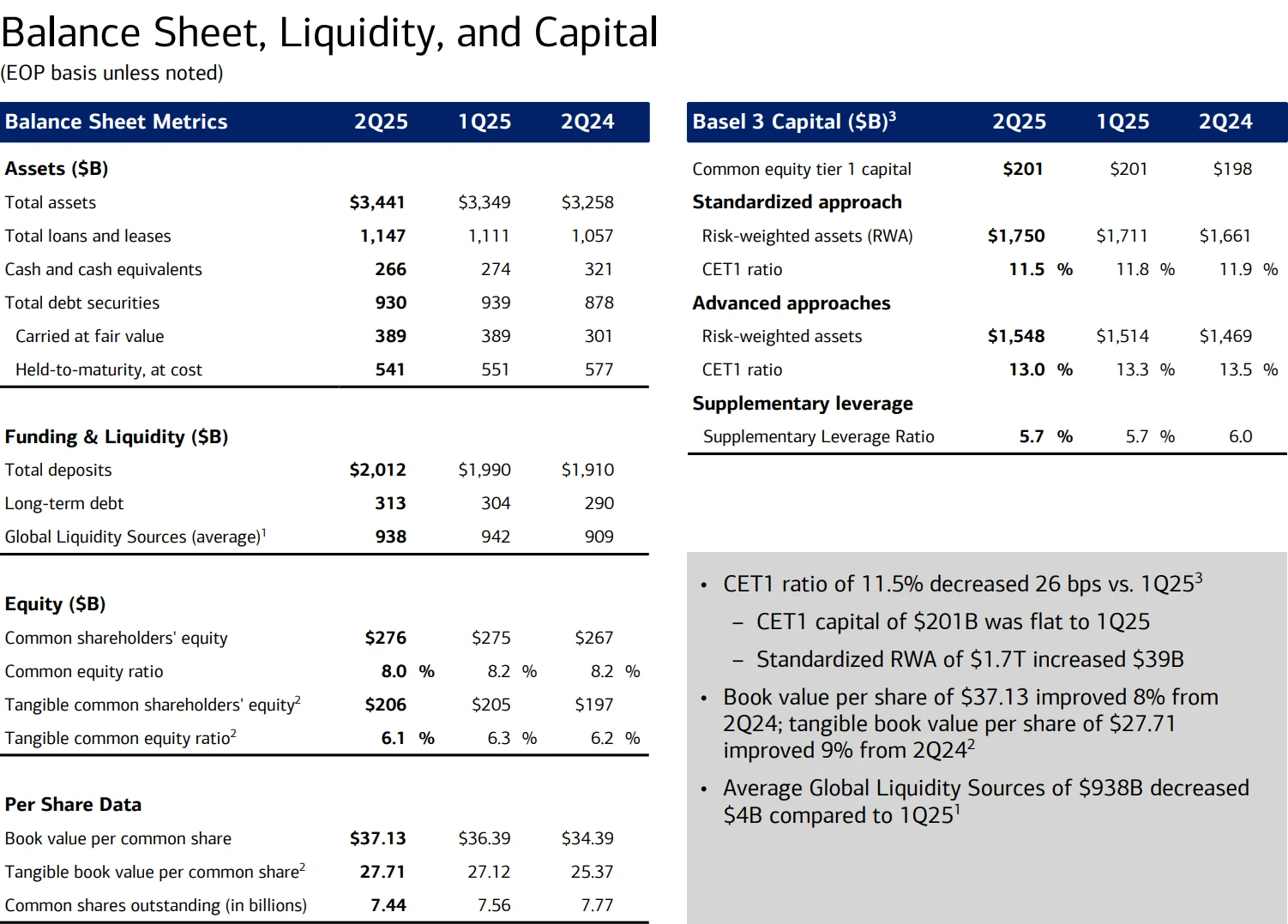 JPMorgan, with its dual “commercial banking + investment banking” model, not only benefits from growth in investment banking revenue but also maintains steady expansion in lending through its large client base, demonstrating stronger earnings resilience.