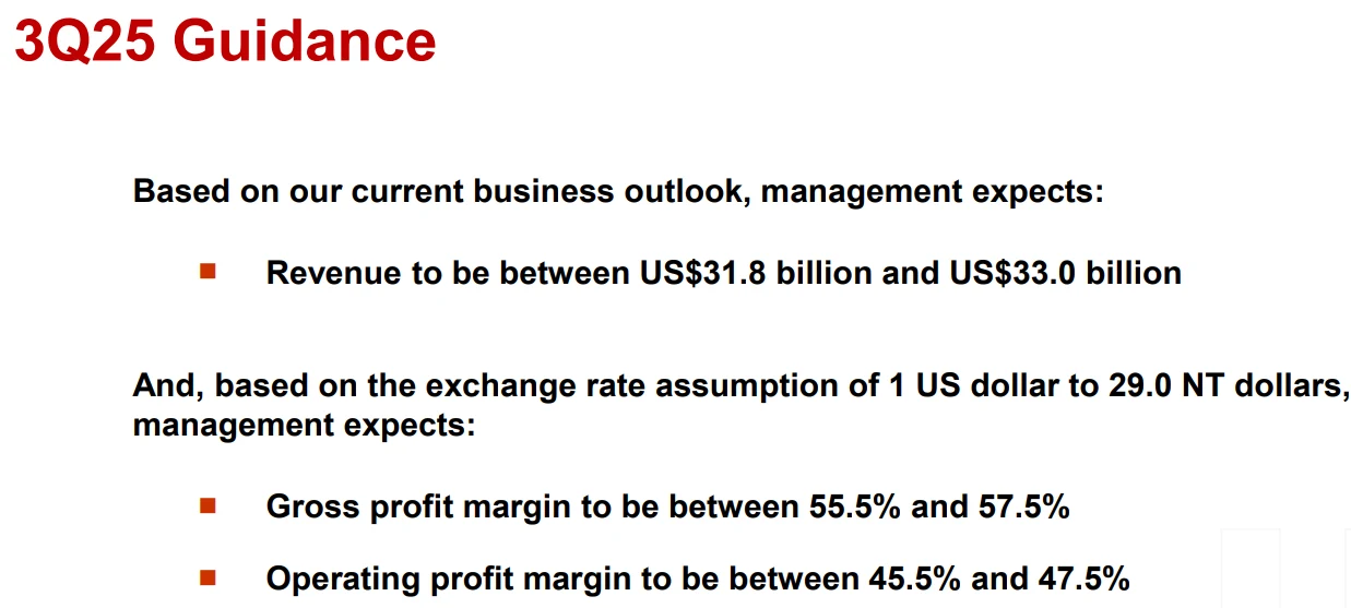 It is worth noting that TSMC’s third-quarter results already show clear signs of growth, with the core driver pointing directly to surging demand in the AI chip sector. According to LSEG SmartEstimate, the company’s quarterly net profit is projected to reach NT$415.4 billion (approximately US$13.55 billion), up 28% year over year; revenue is estimated at NT$989.92 billion (US$32.47 billion), an increase of 30% YoY, landing near the midpoint of TSMC’s guidance range of US$31.8–33.0 billion. If net profit exceeds NT$398.3 billion (the record set in Q2 2025), it would mark the seventh consecutive quarter of growth.